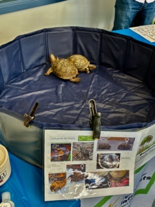 Many people were surprised to hear that Box Turtles are part of the Emydidae (pond turtle) family of turtles and have been observed swimming or simply walking across the bottom of a creek, mainly to cool down in hot weather or, well, just to get to the other side. Box turtles are superficially similar in appearance to tortoises but tortoises are actually in a distinct family – the Testudinidea (land dwelling) family of turtles. John also talked to several guests interested in learning more about VMN.